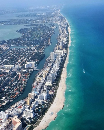 Na pobřeží se nachází krásná sídla a mnoho hotelů. Jeden z nich se např. proslavil tím, že se zde natáčel známý film Osobní strážce. Nyní v něm pořádají různé kulturní události. Převážně jsou to hudební akce těch nejlepších DJs světa. O velké party v tomto hotelu opravdu nouze není. Přesvědčí vás o tom pohled na jeden z pronajatých bazénů pro soukromé party. Bazén, který je obležený mladými lidmi, spousta drinků, teenageři oblečeni jako do klipu pro MTV a top hity současné hudební scény - to je zábava v Miami, kdy mladí mají zrovna jarní prázdniny.